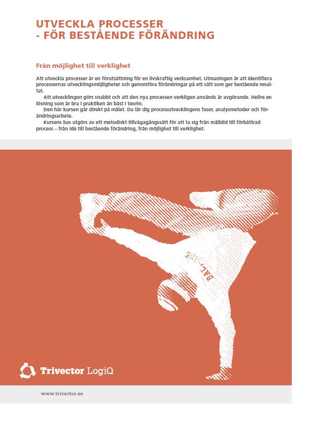 Att kunna identifiera utvecklingsmöjligheter och genomföra förändring på ett sätt som ger bestående resultat är en utmaning. Att det görs snabbt och att den nya processen verkligen används är avgörande. Hellre en lösning som är bra i praktiken än bäst i rapporten på hyllan. Efter kursen har du kunskap om de metoder och verktyg som behövs för att framgångsrikt planera och genomföra processutvecklingsprojekt.